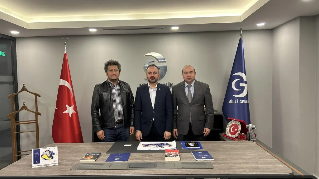 Abdulhamit Karahan and Assoc. Prof. Nimetcan Mehmet Orhun from the Uygur Academy visited National Youth Association President Ahmet Özvatan in Ankara.