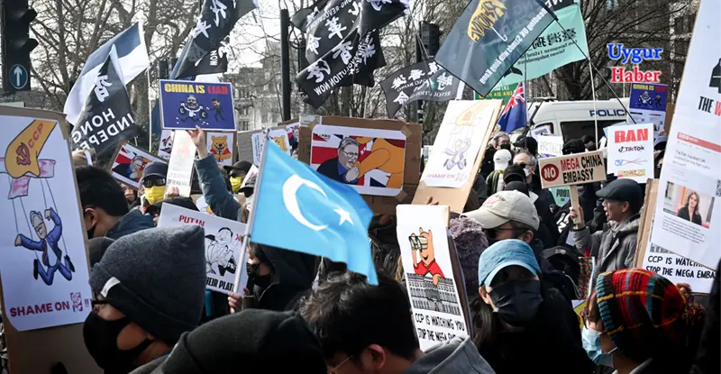 Rights groups, along with several Hong Kongers, Uyghurs, Tibetans, and local residents, gathered at the historic former Royal Mint Court in London to protest China's plan for a 'mega-embassy.