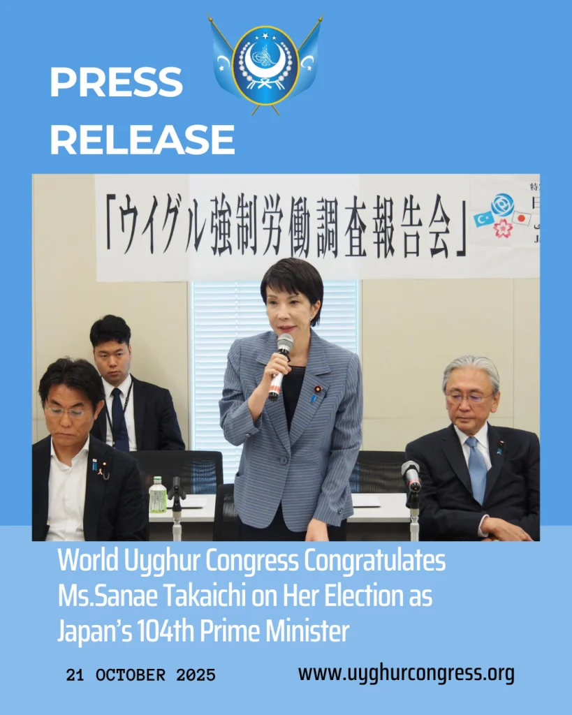The World Uyghur Congress congratulates Sanae Takaichi on becoming Japan’s 104th Prime Minister, praising her support for Uyghur rights and welcoming continued cooperation to advance human rights.